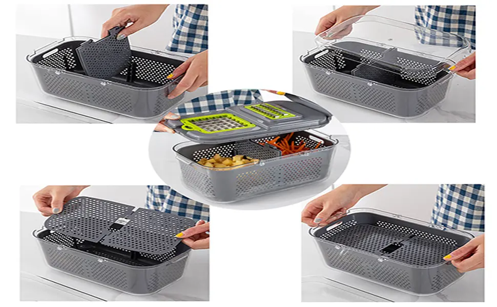 La Mandolina / Picadora Multifuncional 22 en 1 te permite cortar, rallar y picar frutas y verduras de forma rápida, segura y prolija. Incluye 13 cuchillas de acero inoxidable para lograr distintos tipos de cortes en segundos.
